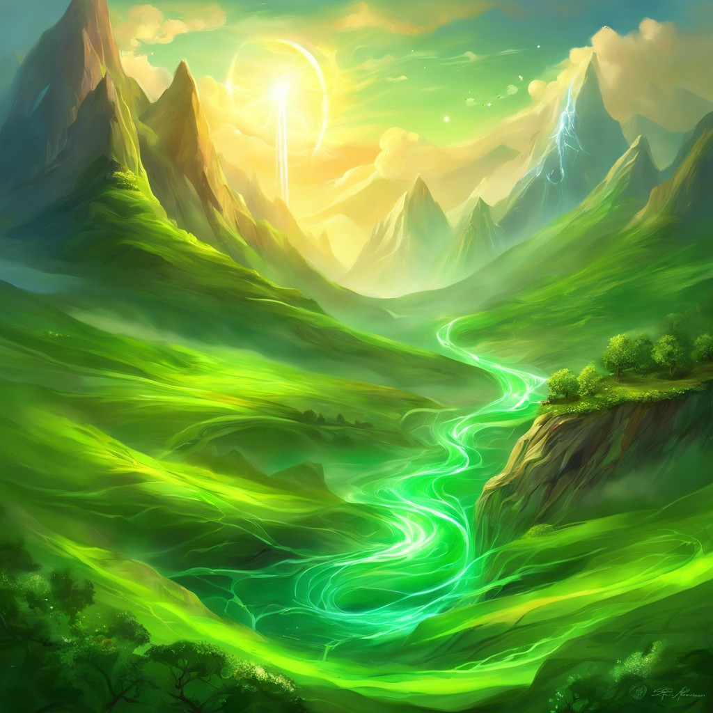 The planet is engulfed by channels of energy called Vitalis. The flow of energy is focused in a few high-density currents flowing through and around the planet. These high-density currents branch into smaller ones covering all areas of the world. If the density of energy is high enough, it becomes visible as green lights, streaming in the direction of the current. The location of the currents shifts over time. They tend to move towards regions with low energy density, resulting in a constant shift of energy around the world.